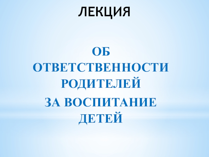 ЛЕКЦИЯОБ ОТВЕТСТВЕННОСТИ РОДИТЕЛЕЙ ЗА ВОСПИТАНИЕ ДЕТЕЙ