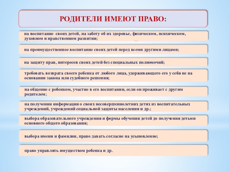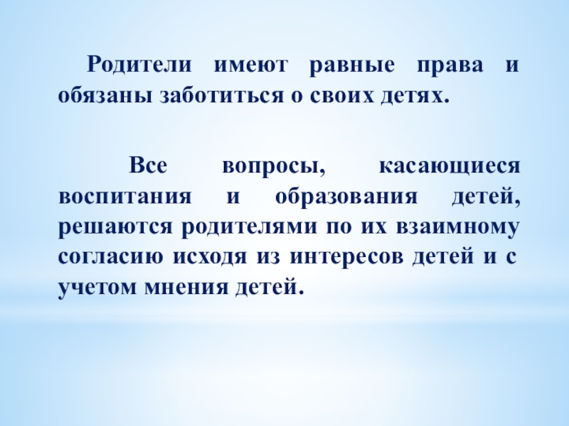 Слайд 2Родители имеют равные права и обязаны заботиться о своих детях.