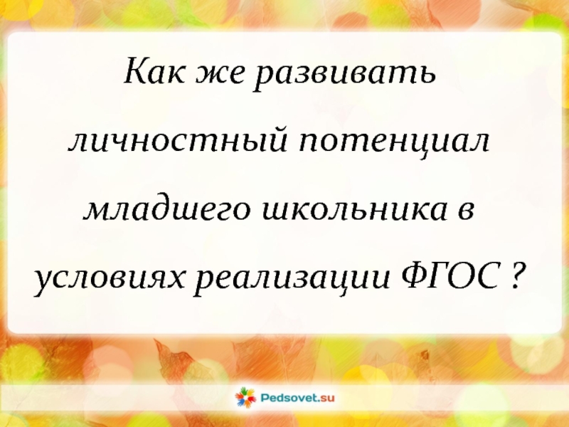 Презентация, доклад на тему Педагогические основы повышения личностного потенциала младшего школьника.