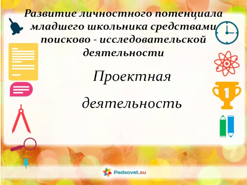Проектная деятельностьРазвитие личностного потенциала младшего школьника средствами поисково - исследовательской деятельности