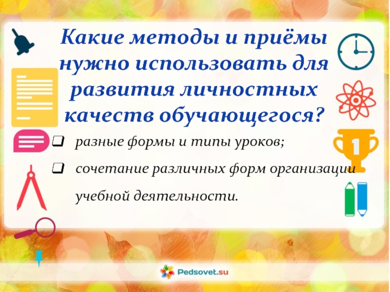 рассмотреть методы и приёмы для развития личностных качеств обучающегося.