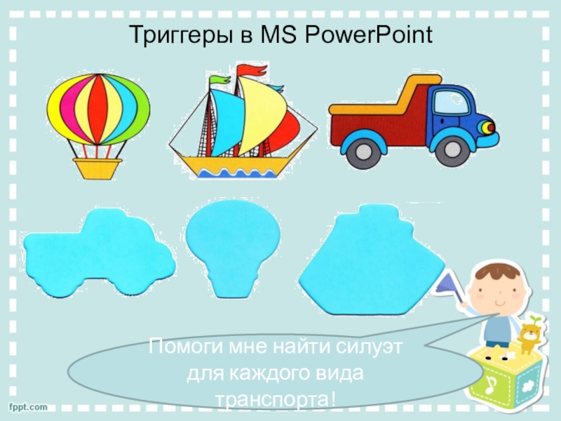 Триггеры в MS PowerPointПомоги мне найти силуэт для каждого вида транспорта!