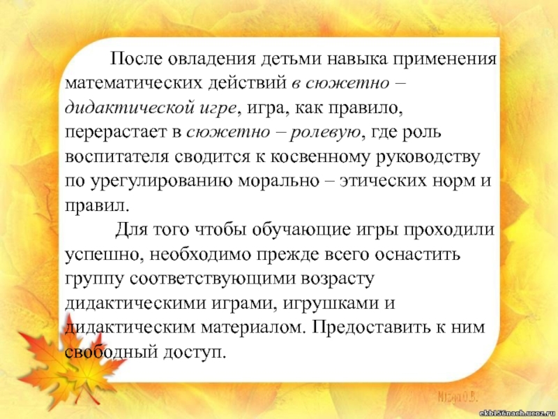 Слайд 20После овладения детьми навыка применения математических действий в сюжетно – дидактической
