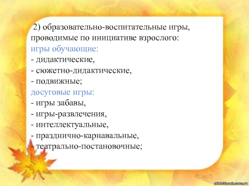 2) образовательно-воспитательные игры, проводимые по инициативе взрослого:
