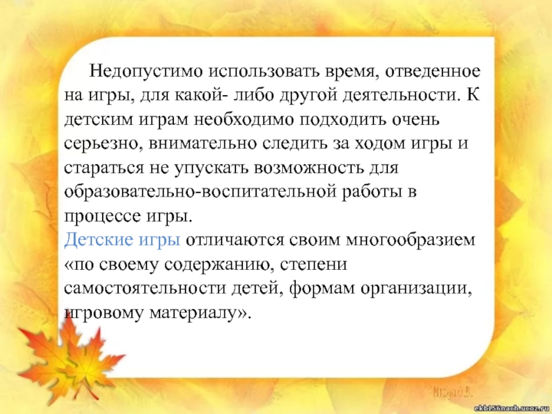 Слайд 6 Недопустимо использовать время, отведенное на игры, для какой-