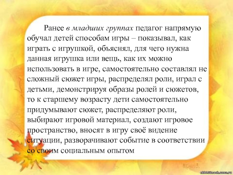 Слайд 12 Ранее в младших группах педагог напрямую обучал