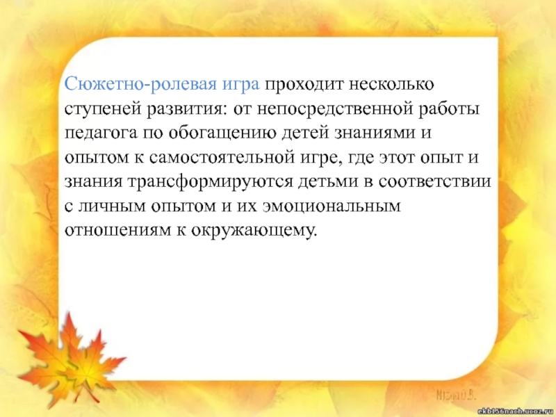 Сюжетно-ролевая игра проходит несколько ступеней развития: от непосредственной работы педагога по
