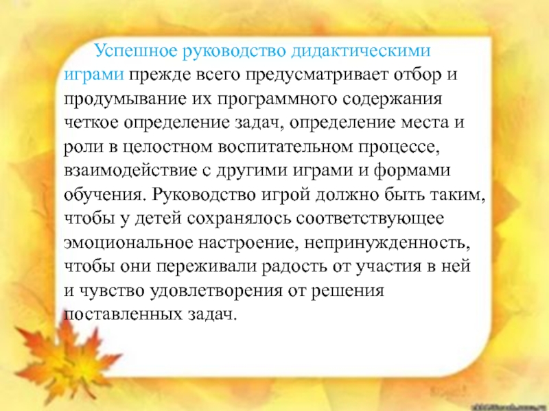 Успешное руководство дидактическими играми прежде всего предусматривает отбор