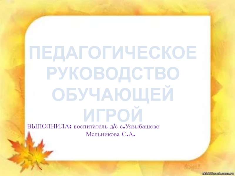 ВЫПОЛНИЛА: воспитатель д/с с.Уязыбашево