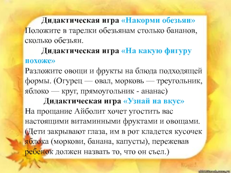 Слайд 34 Дидактическая игра «Накорми обезьян»