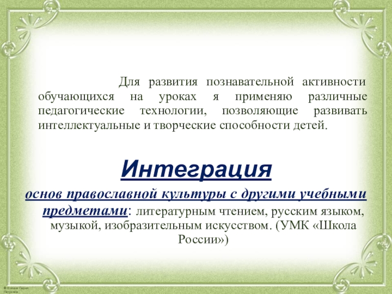 основ православной культуры с другими учебными предметами: литературным чтением, русским языком, музыкой, изобразительным искусством. (УМК «Школа России»)