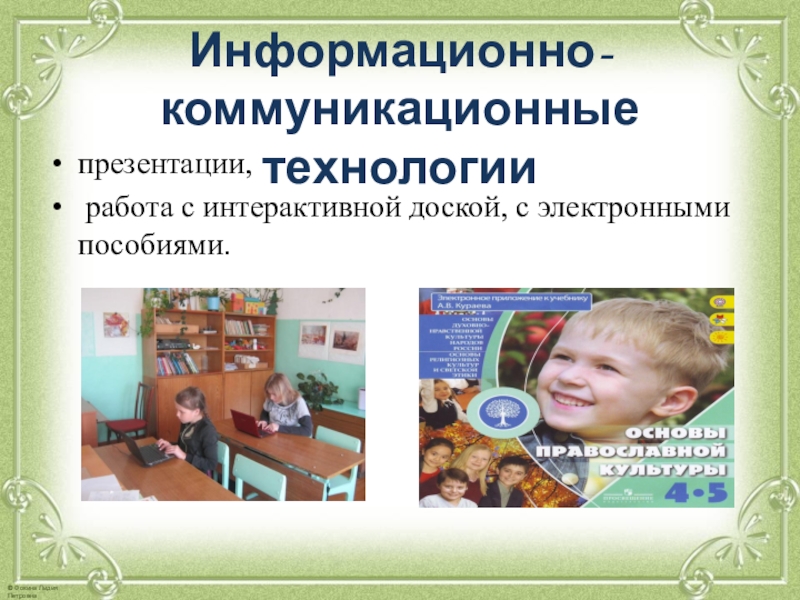 работа с интерактивной доской, с электронными пособиями.