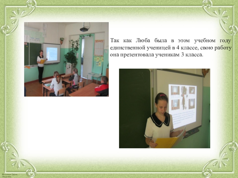 4 классе, свою работу она презентовала ученикам 3 класса.