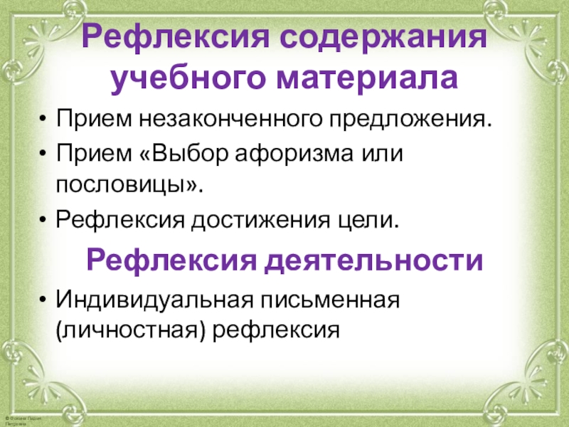 Рефлексия содержания учебного материала