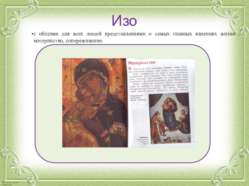 жизни : материнство, сопереживание.