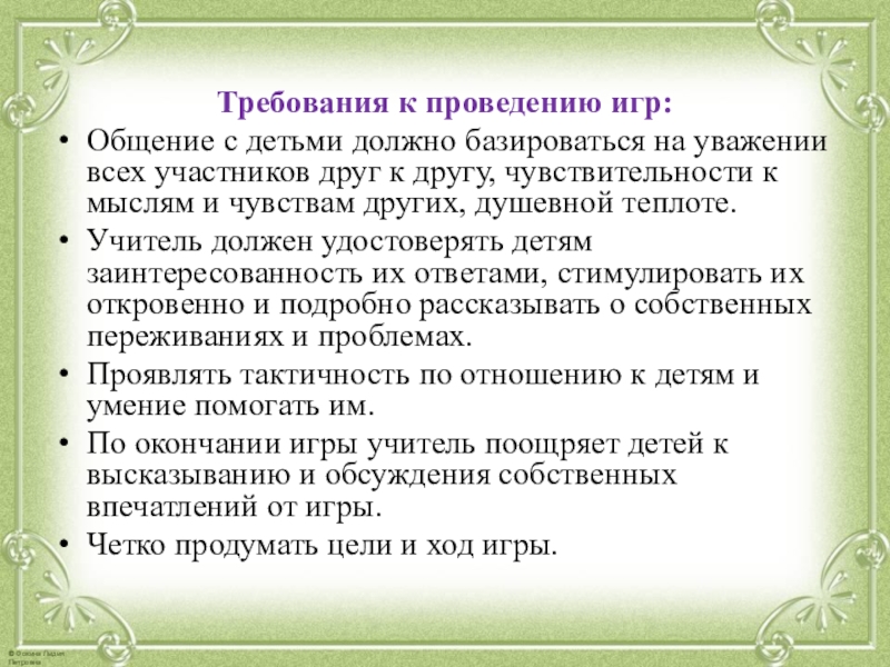Слайд 21Требования к проведению игр: