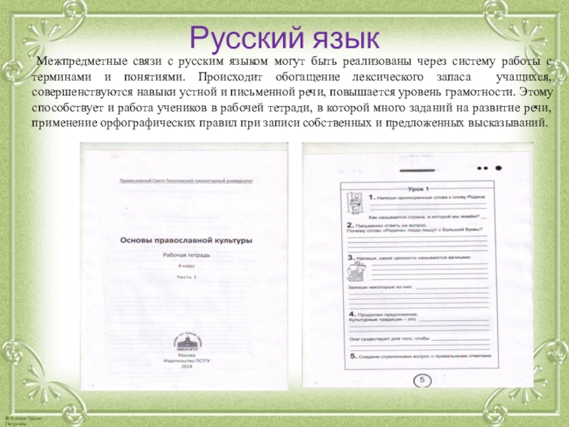 Межпредметные связи с русским языком могут быть реализованы через