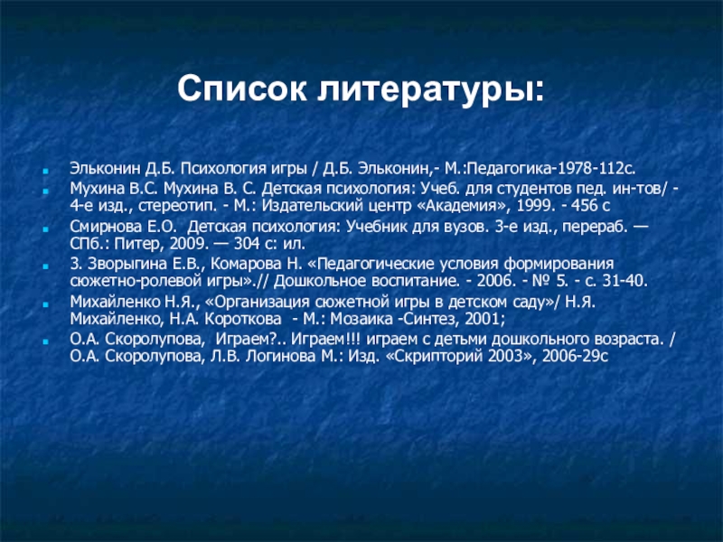 Эльконин Д.Б. Психология игры / Д.Б. Эльконин,- М.:Педагогика-1978-112с.