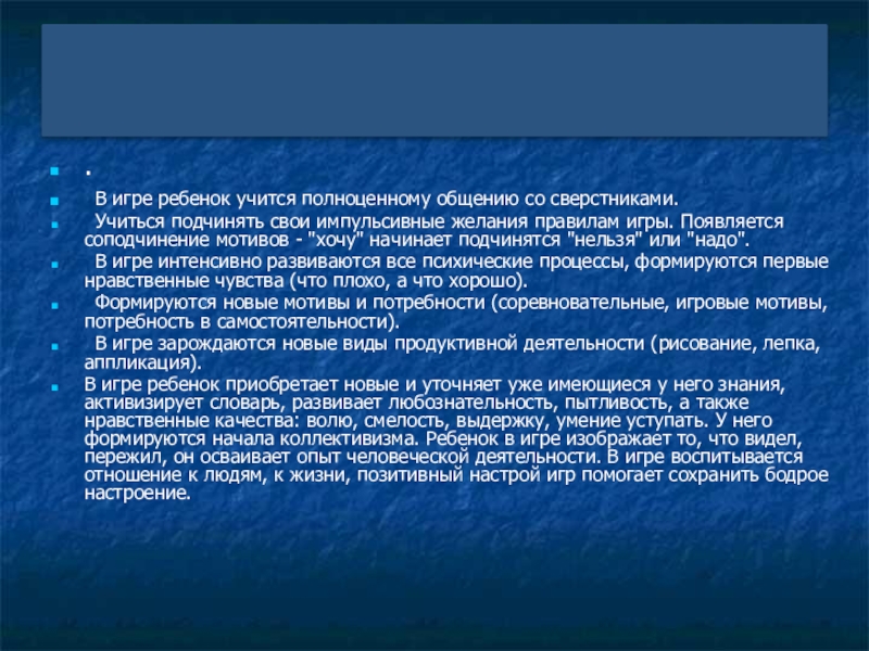 Слайд 6Значение игры для развития ребенка-дошкольника