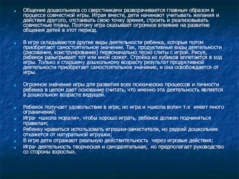 Слайд 9Общение дошкольника со сверстниками разворачивается главным образом в процессе совместной игры.