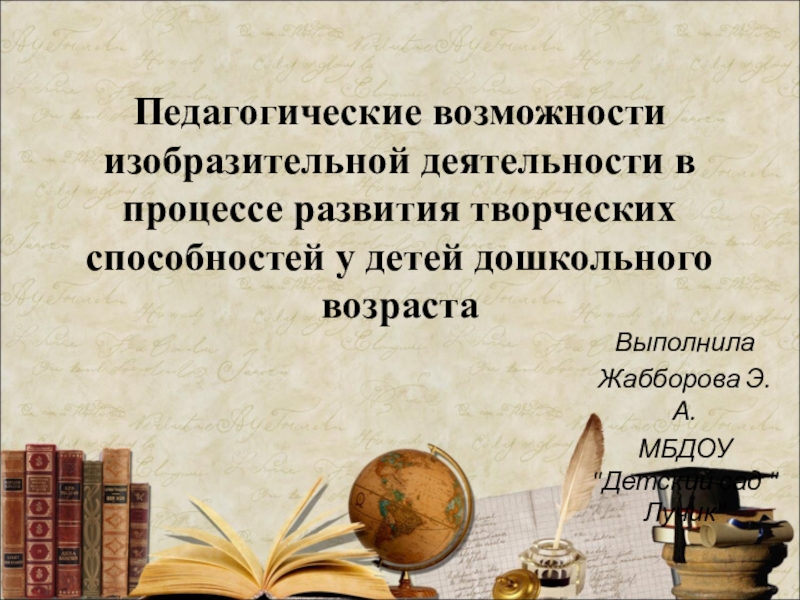 Слайд 1Педагогические возможности изобразительной деятельности в процессе развития творческих способностей у детей