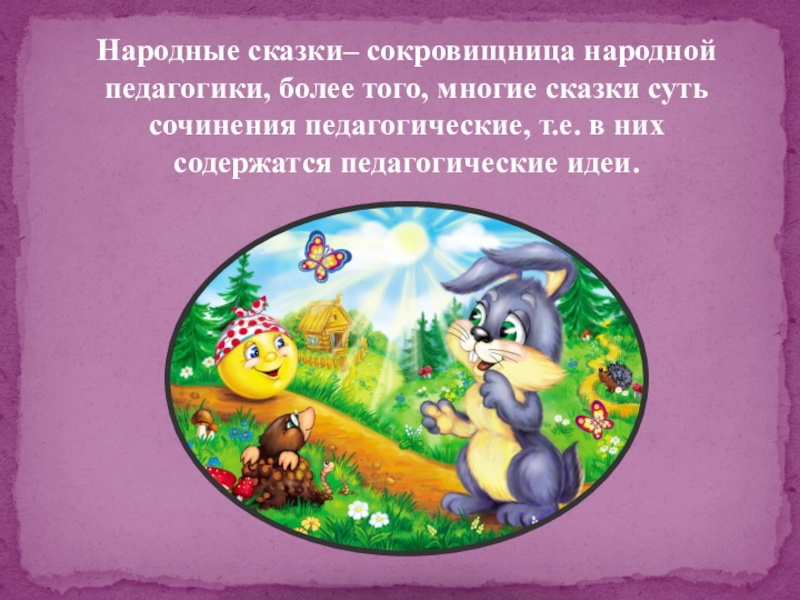 Слайд 9Народные сказки– сокровищница народной педагогики, более того, многие сказки суть сочинения