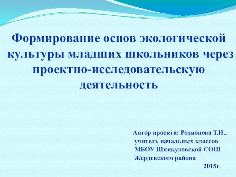 Формирование основ экологической культуры младших школьников через проектно-исследовательскую деятельность