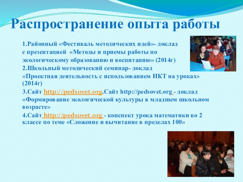 Слайд 23Распространение опыта работы
