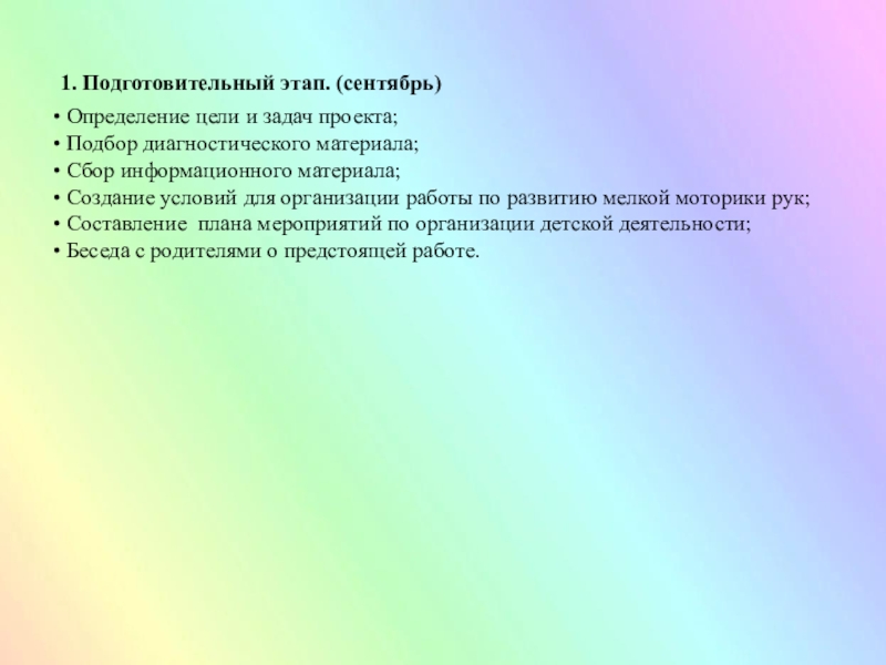 Слайд 71. Подготовительный этап. (сентябрь)