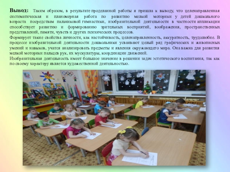 выводу, что целенаправленная систематическая и планомерная работа по развитию мелкой моторики у детей дошкольного