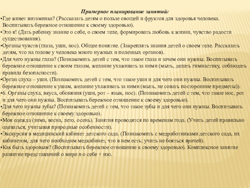 Занятия важно строить так, чтобы дети получали знания о том, от чего зависит наше здоровье, приобретали навыки самосовершенствования.