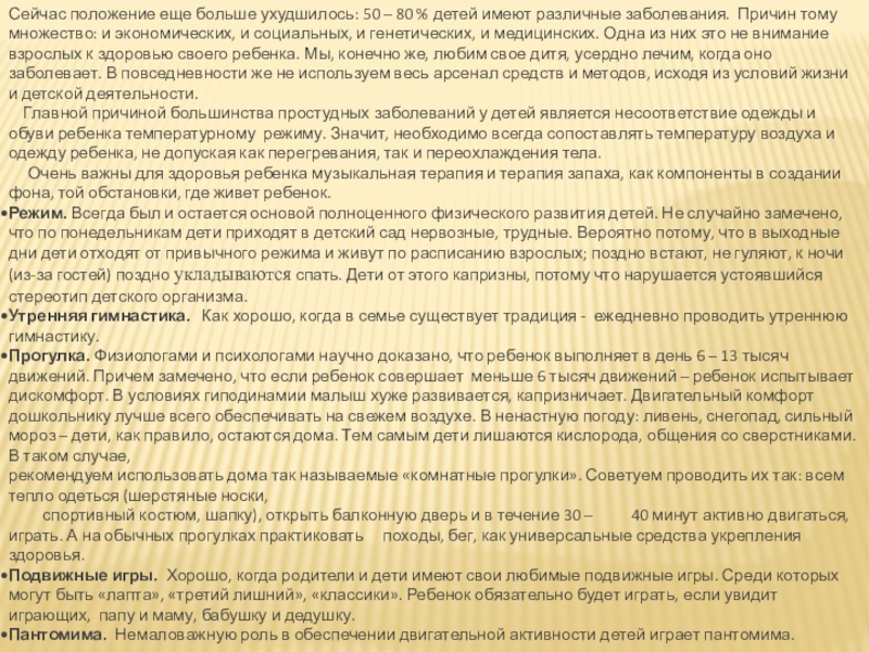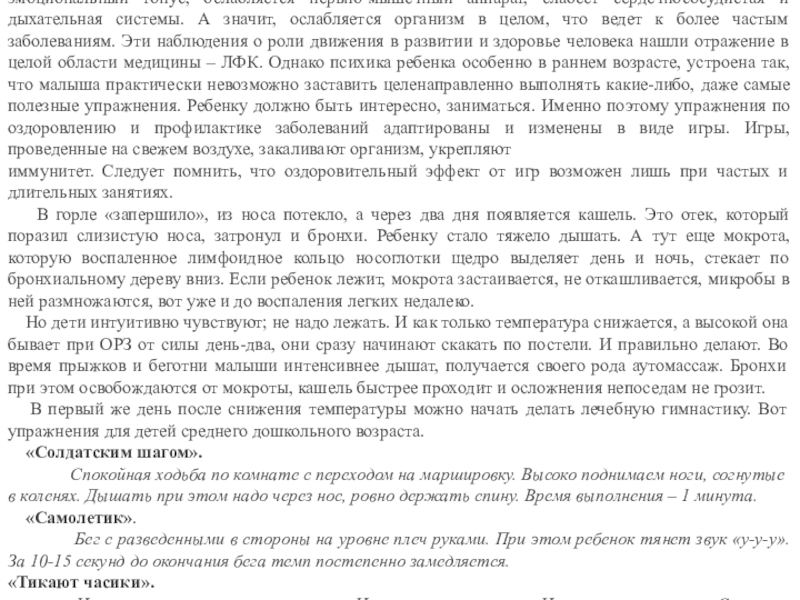 спортивный костюм, шапку), открыть балконную дверь и в течение 30 – 40 минут активно двигаться, играть. А на обычных прогулках практиковать походы, бег, как универсальные средства укрепления здоровья.