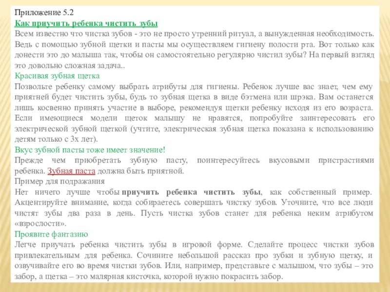 Легче приучать ребенка чистить зубы в игровой форме. Сделайте процесс чистки зубов привлекательным для ребенка. Сочините небольшой рассказ про зубки и зубную щетку, и озвучивайте его во время чистки зубов. Или, например, представьте с малышом, что зубы – это забор, а щетка – это малярная кисточка, которой нужно покрасить забор.