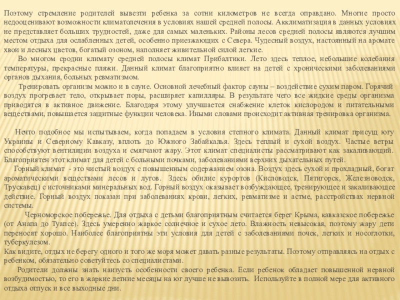Слайд 19Поэтому стремление родителей вывезти ребенка за сотни километров не всегда оправдано.