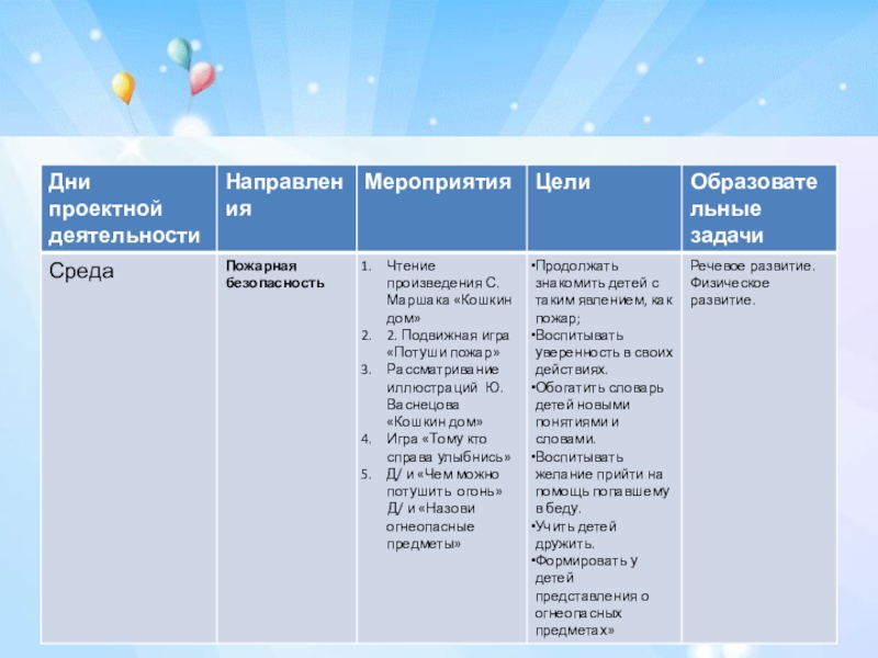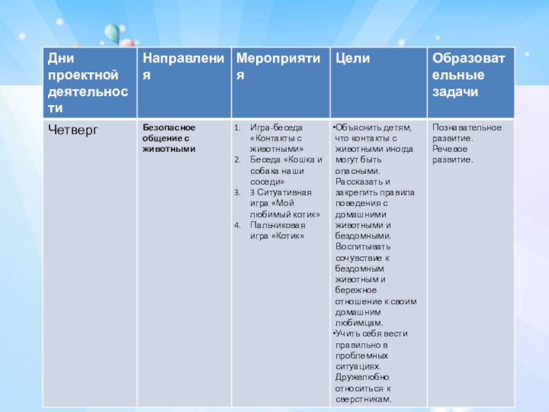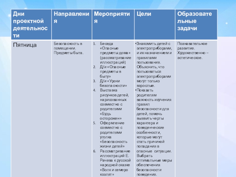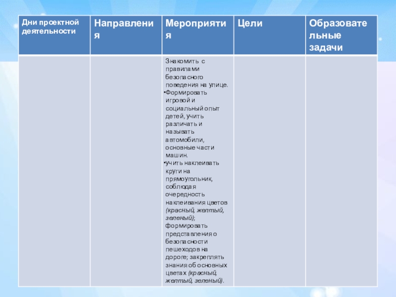 1. Сформировать представление у детей о безопасном поведении на дороге, в природе и в собственной жизнедеятельности.