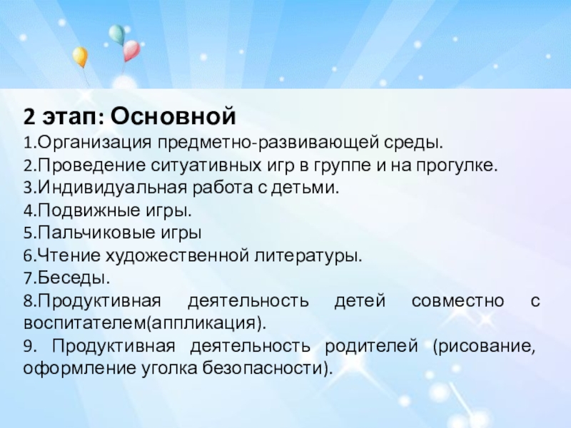 9. Продуктивная деятельность родителей (рисование, оформление уголка безопасности).