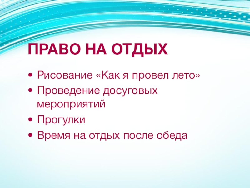 Слайд 30ПРАВО НА ОТДЫХ