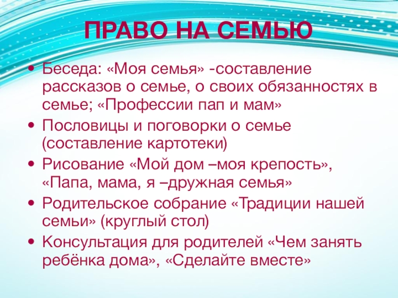 Слайд 11ПРАВО НА СЕМЬЮ