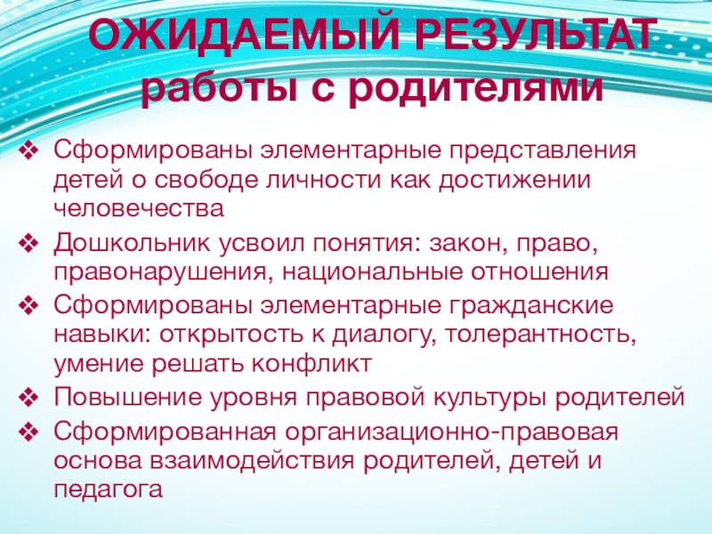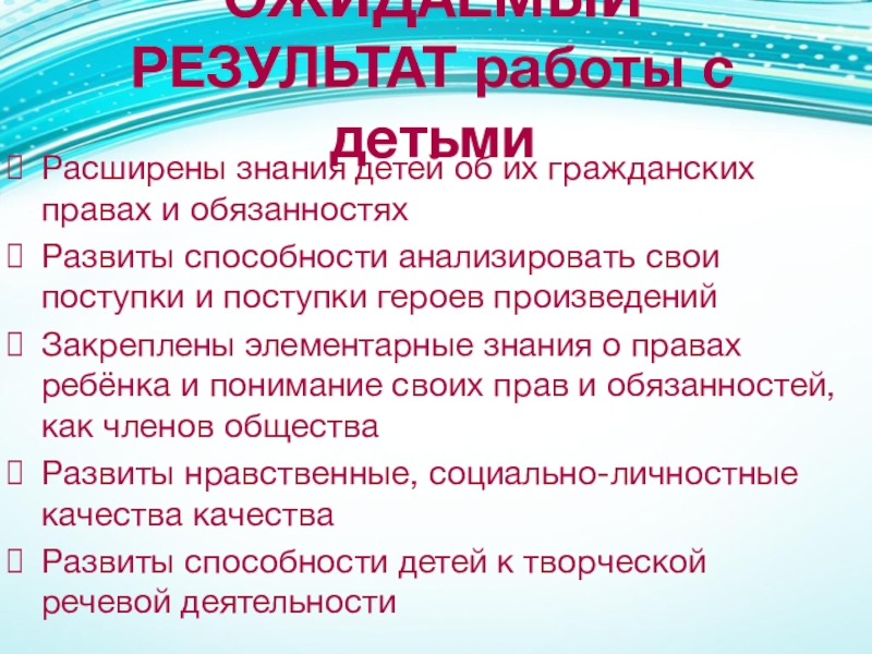 Слайд 8ОЖИДАЕМЫЙ РЕЗУЛЬТАТ работы с детьми