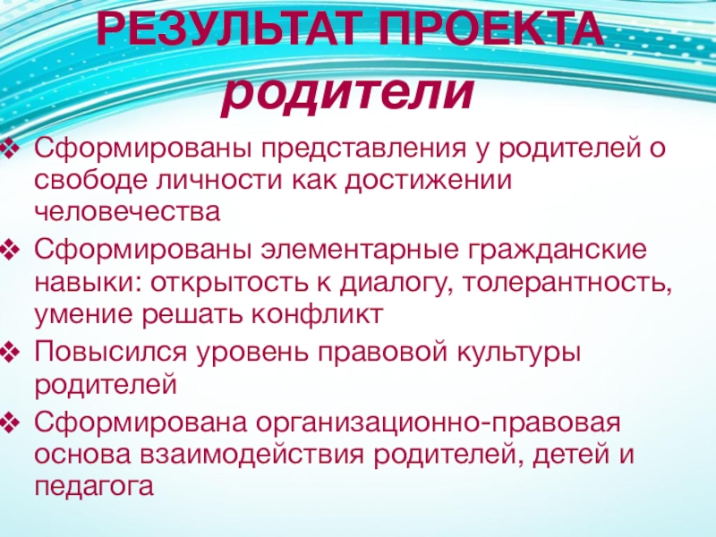 Сформированы представления у родителей о свободе личности как достижении человечества
