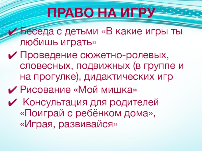 Слайд 23ПРАВО НА ИГРУ
