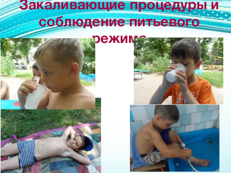 Слайд 21Закаливающие процедуры и соблюдение питьевого режима