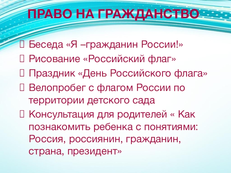 Слайд 16ПРАВО НА ГРАЖДАНСТВО