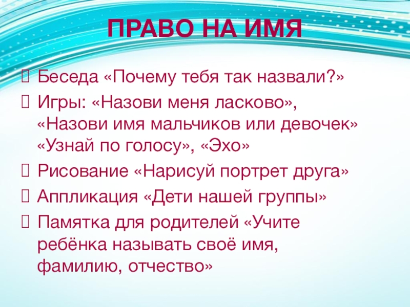 Слайд 15ПРАВО НА ИМЯ