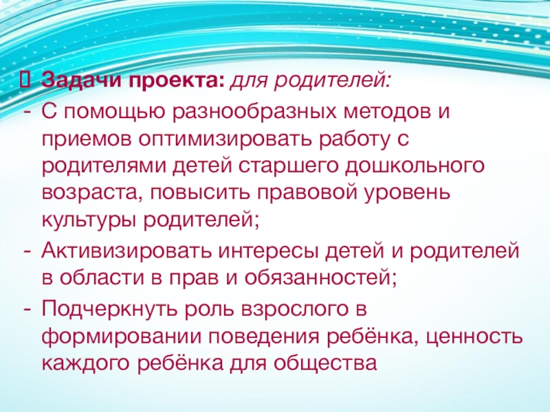 Слайд 6Задачи проекта: для родителей: