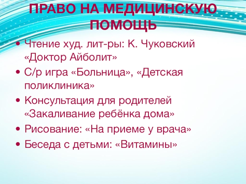 Слайд 20ПРАВО НА МЕДИЦИНСКУЮ ПОМОЩЬ