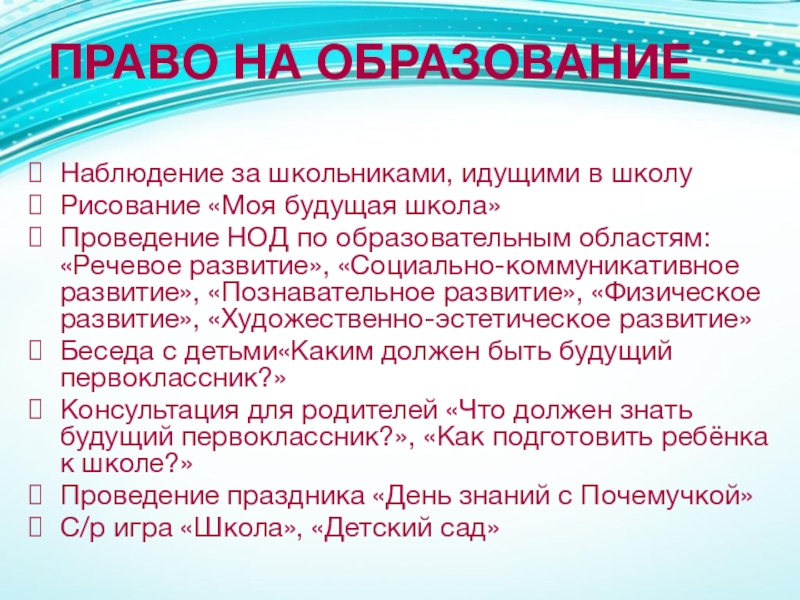 Слайд 28ПРАВО НА ОБРАЗОВАНИЕ