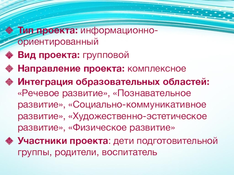 Слайд 2Тип проекта: информационно-ориентированный