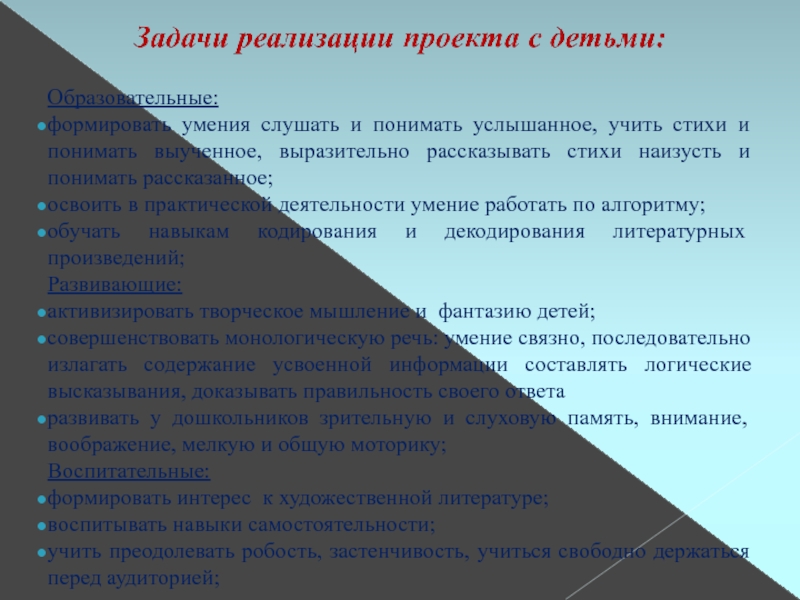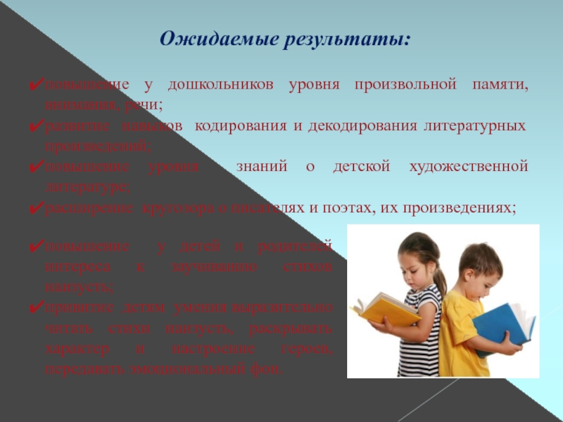повышение у дошкольников уровня произвольной памяти, внимания, речи;