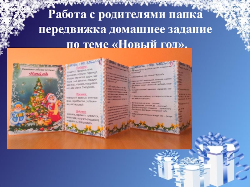 Слайд 15Работа с родителями папка передвижка домашнее задание